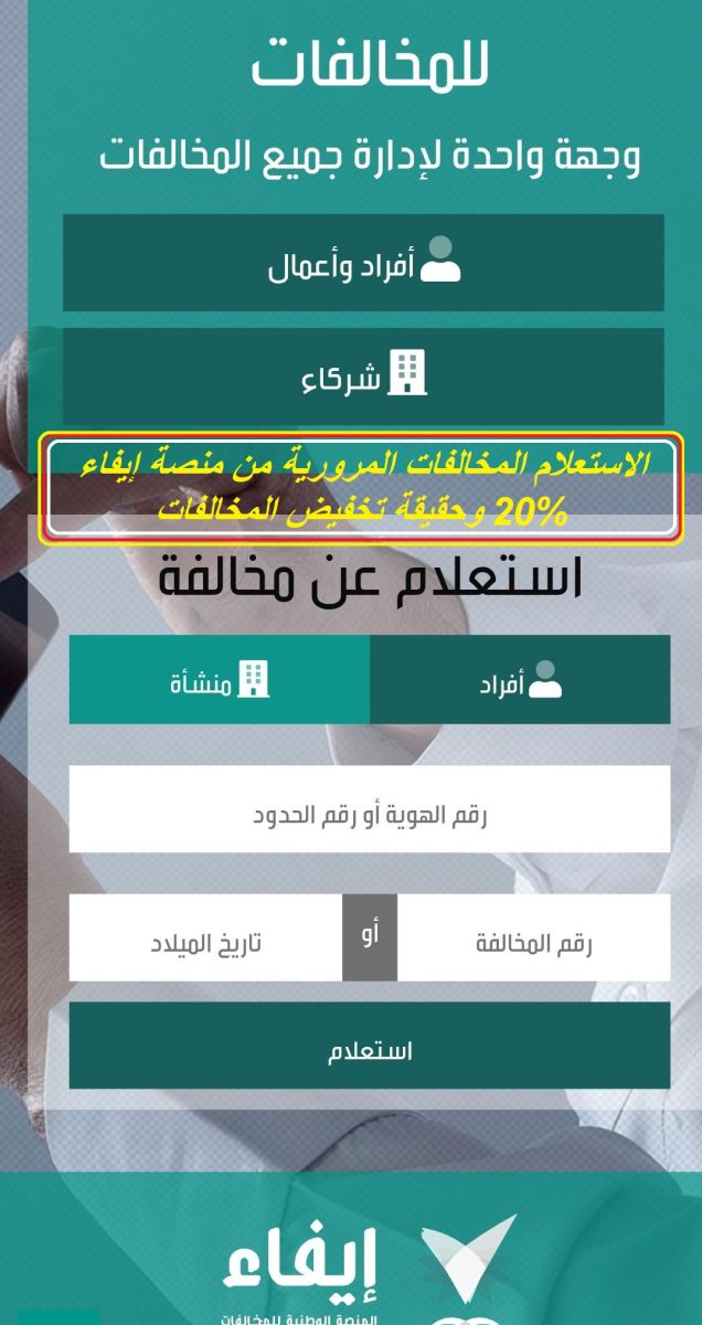 الاستعلام عن المخالفات عبر منصة إيفاء